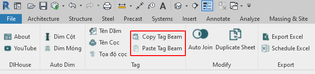 Công cụ này giúp người dùng copy/ paste tag. những dầm nào cùng vị trí và chưa được tag trên mặt bằng sẽ được copy tag ở tầng dưới lên. Còn những dầm có vị trí khác dầm ở dưới (dầm mới sẽ ko được đánh tên Mark). Công việc còn lại sửa lại tên cho phù hợp và tag tên dầm nào còn thiếu khi do vẽ thêm.