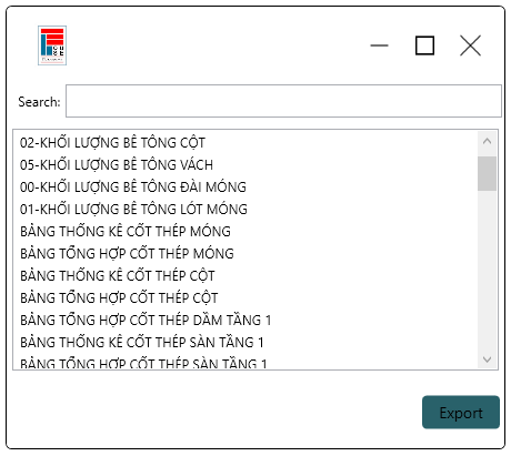 Công cụ giúp người dũng xuất khối lượng bê tông các cấu kiện.